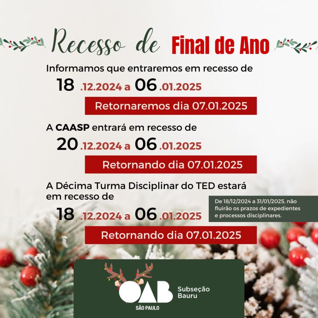A CAASP entrará em recesso de 20.12.2024 a 06.01.2025
